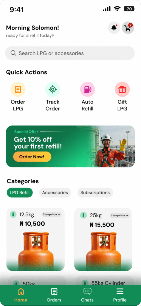 A mobile app for merciport enterprises that allows users to purchase or gift LPG or cooking gas at an affordable price, from anywhere in the globe, and receives delivery anywhere in Nigeria