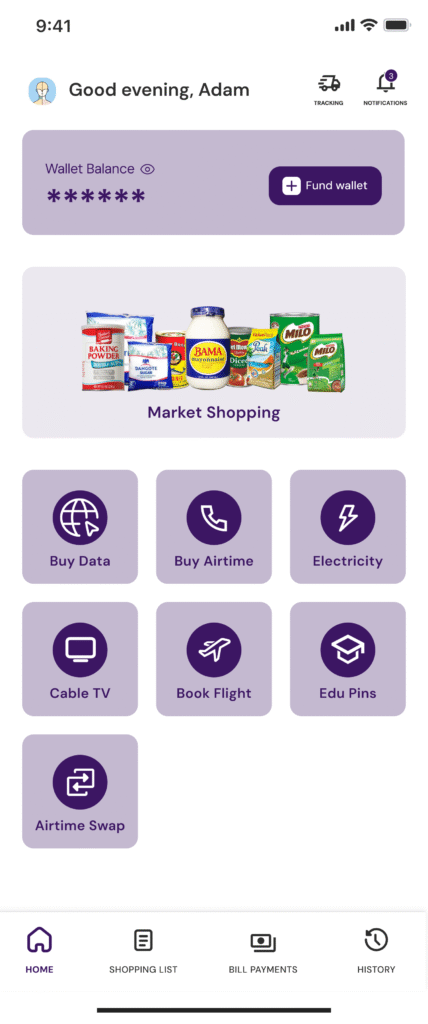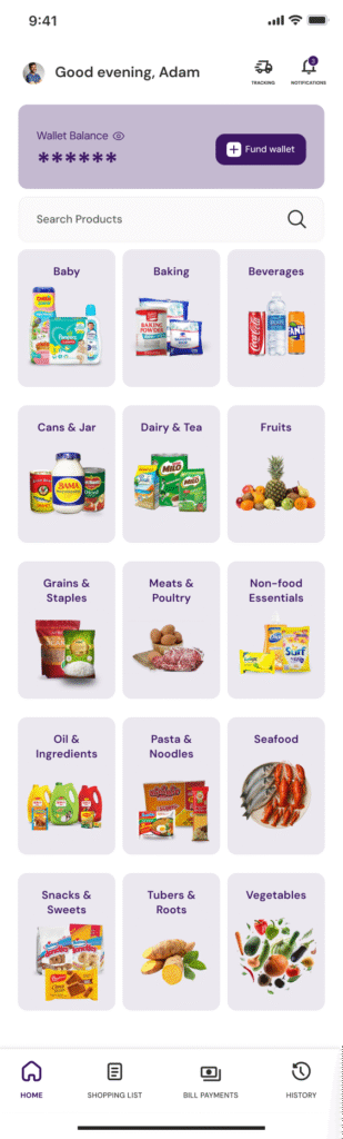 An ecommerce and utility app that allows users to purchase food items, pay bills, and get purchased items delivered to your doorstep